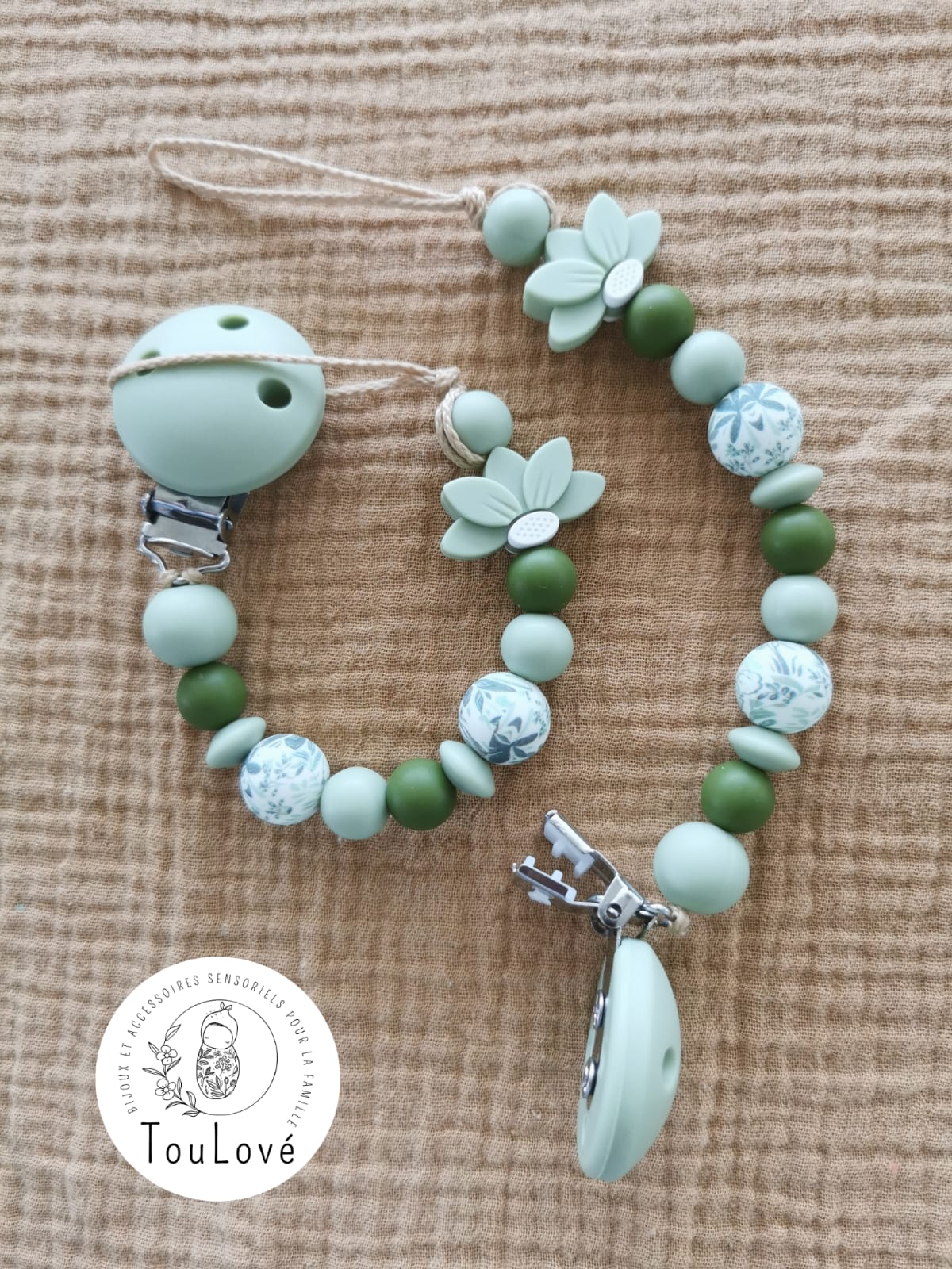 Attache tétine – Lotus Kaki – Toulové