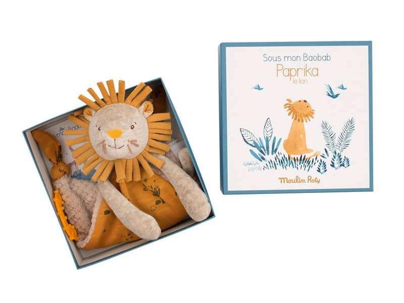 Doudou attache-tétine lion – Sous mon baobab – Moulin Roty