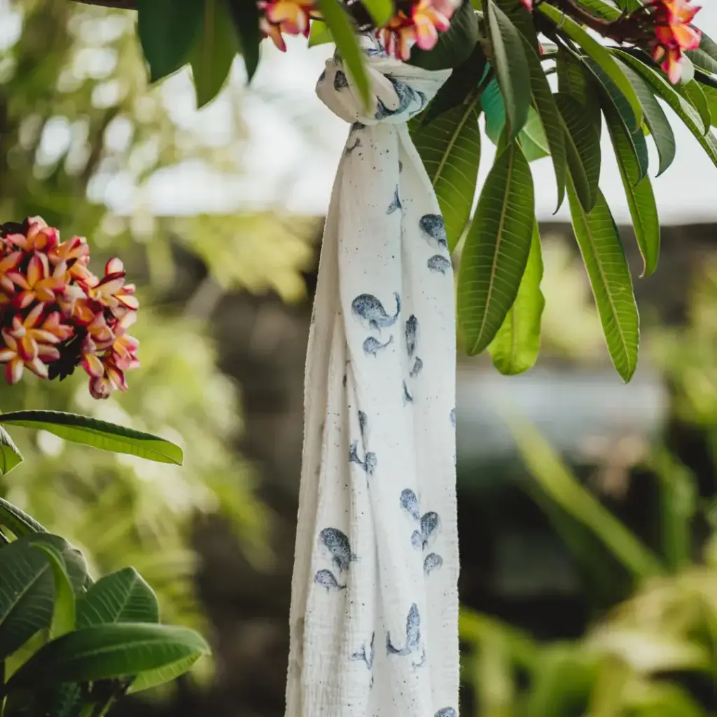 Lange 60x60cm « Les baleines bleues » – Pop et ses frères