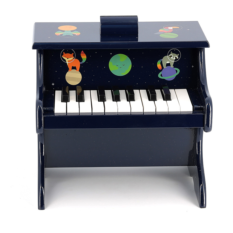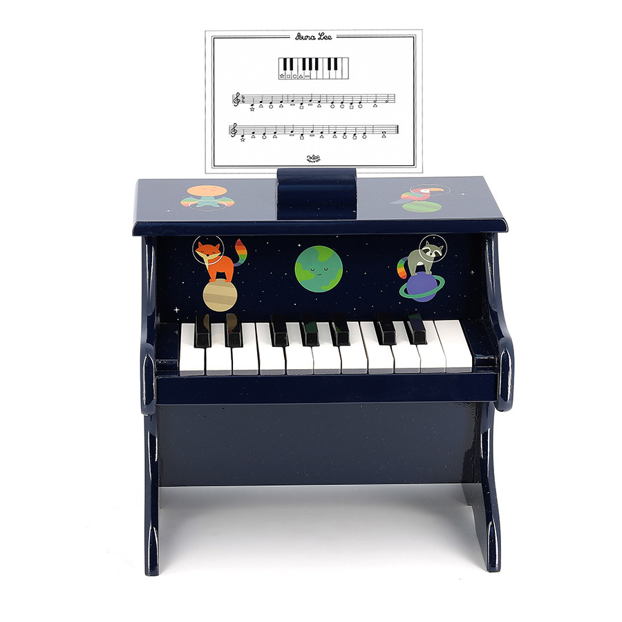 Nos jouets sont aussi imaginés pour déclencher des passions. Sans avoir la prétention d’être un instrument de musique aux notes parfaitement ajustées, ce joli piano-jouet en bois illustré par l’artiste Andy Westface est livré avec dix partitions adaptées aux enfants dès 3 ans, afin qu’ils fassent leurs premiers pas dans le monde musical.