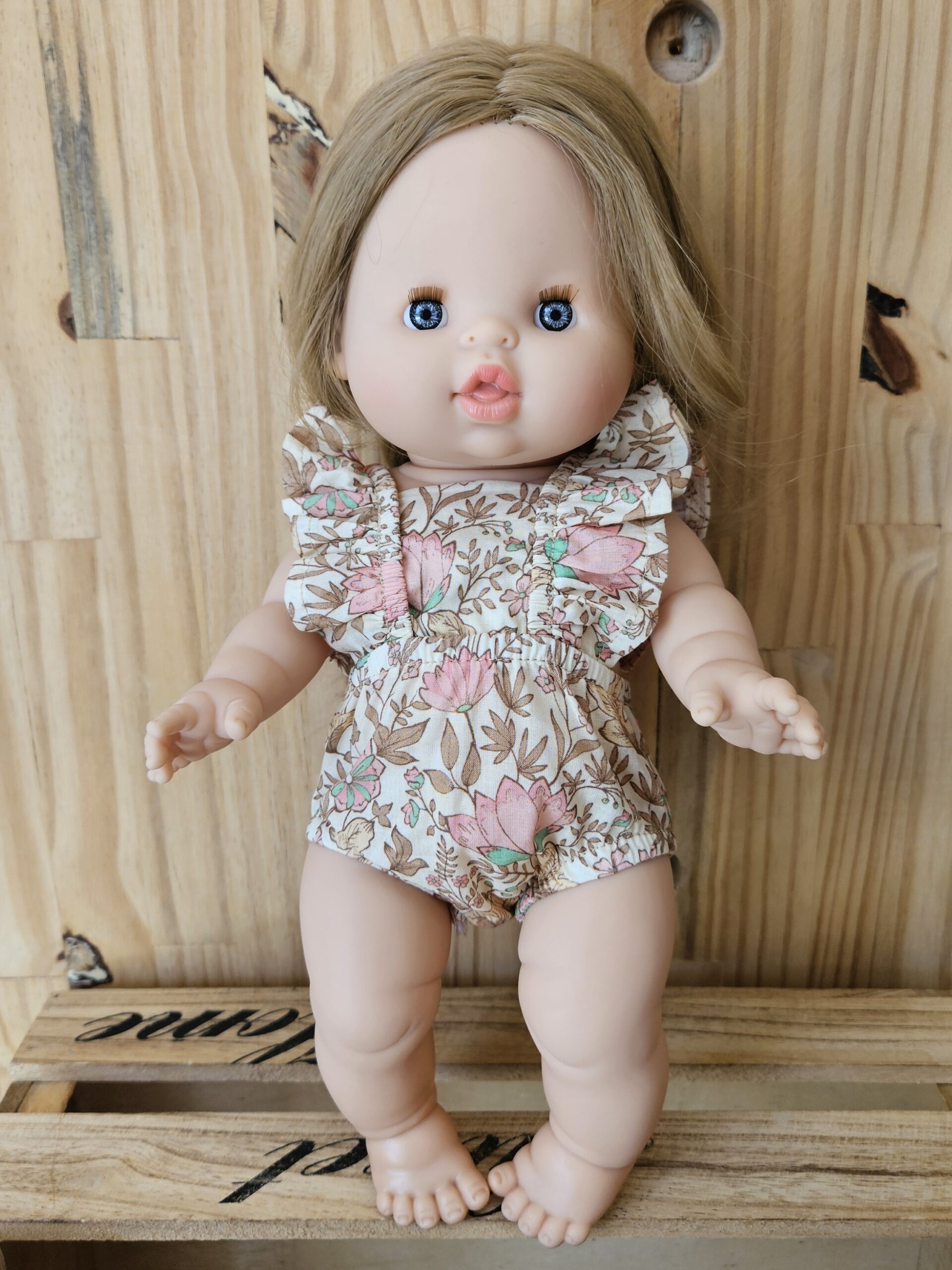 Poupée Aliénor 34cm – Barboteuse Lou gaze de coton Indienne rosée – Minikane