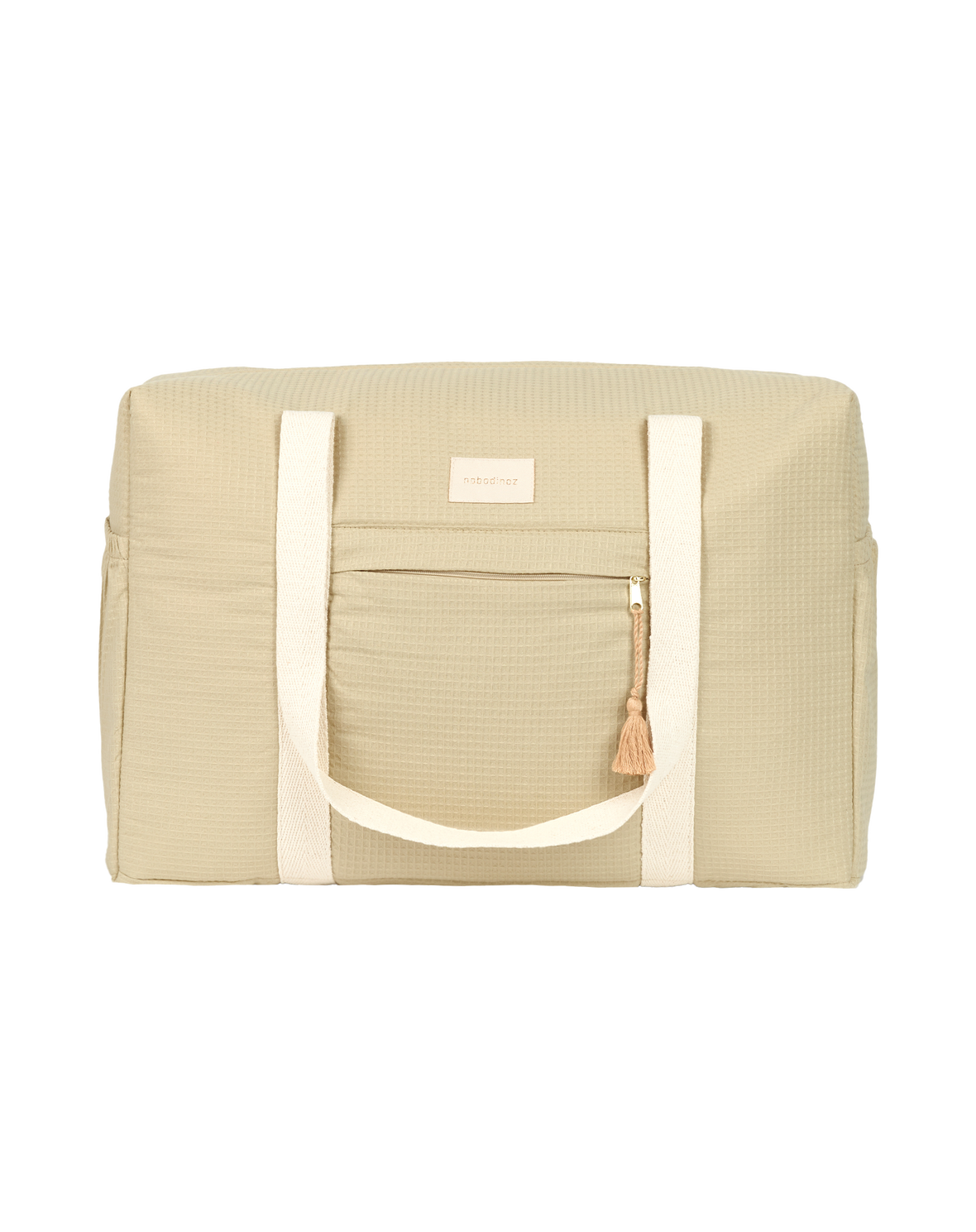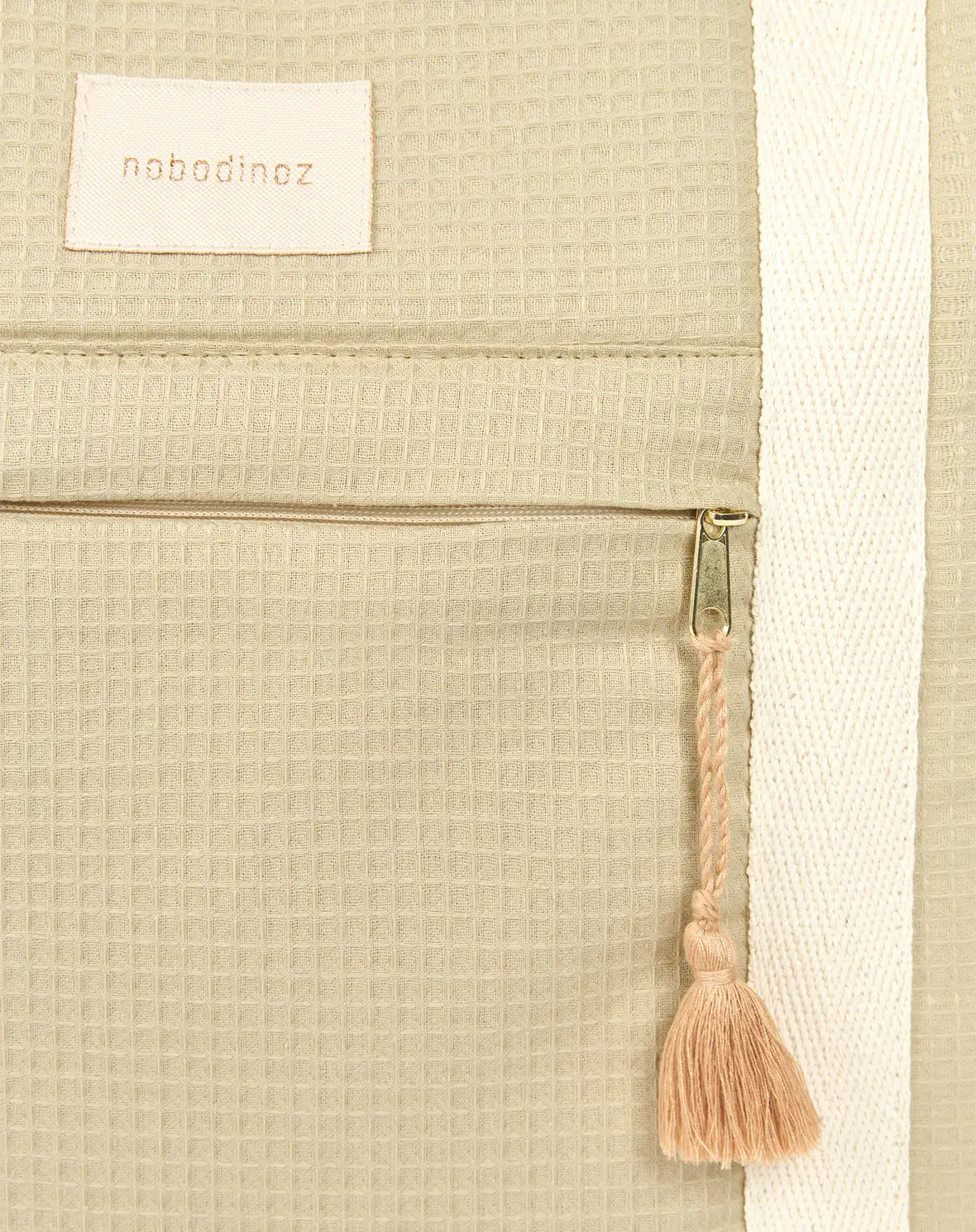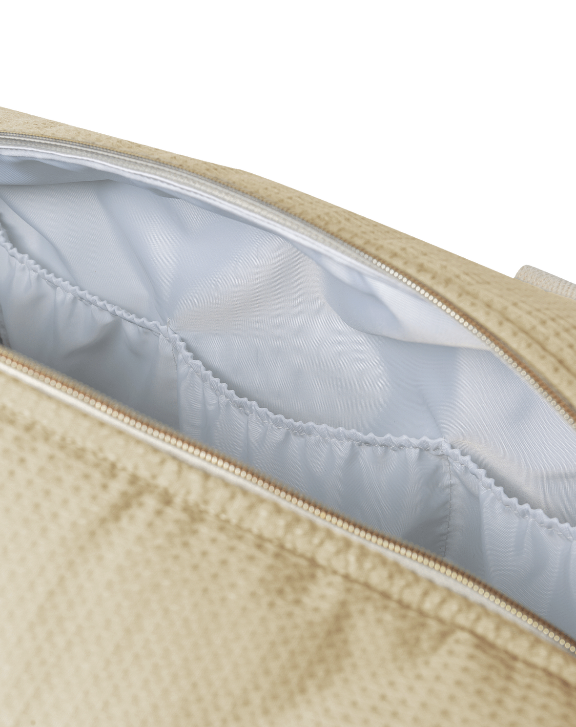 Create a listVéritable valise de maternité, le sac Opéra est parfait pour le séjour à la maternité grâce à sa forme et sa grande taille. Accompagnez-le d’une trousse de toilette et d’un tapis à langer imperméable. Ils sont tous en nid d’abeille 100% coton bio, raffiné, élégant et résistant, idéal pour les affaires de maternité. Le dessin du nid d’abeille est exclusif, conçu en collaboration avec nos tisseurs barcelonais.